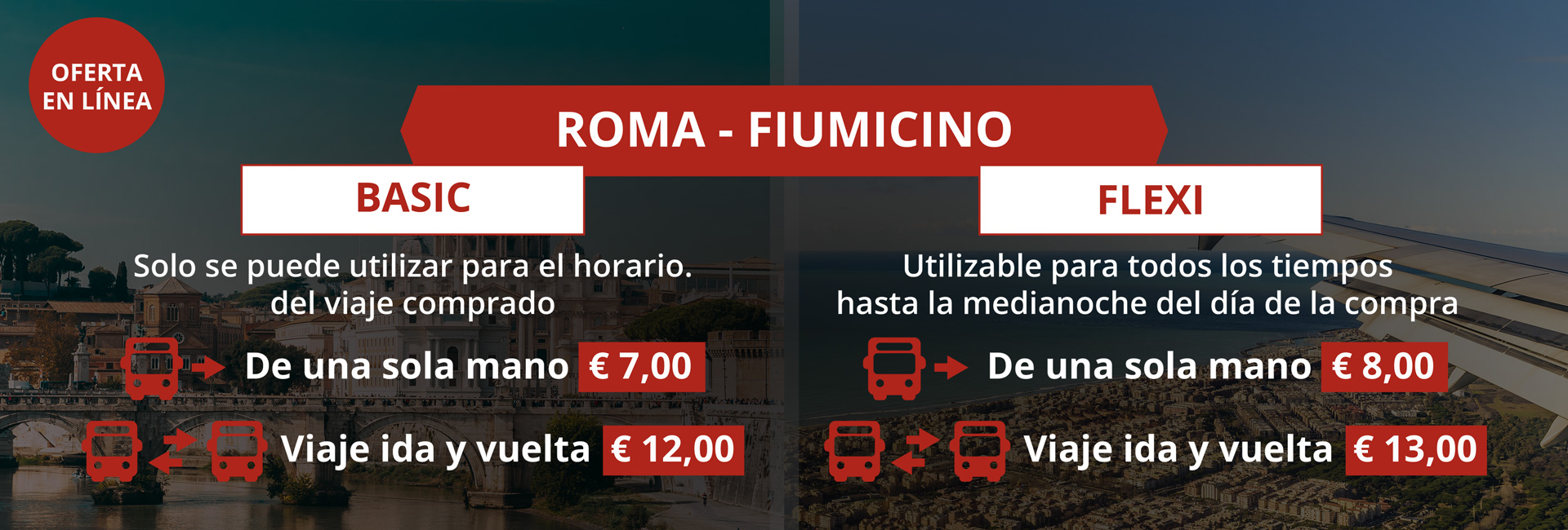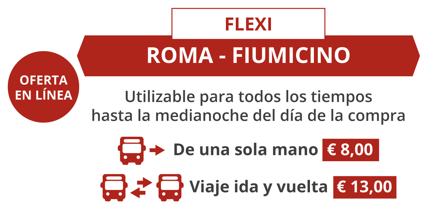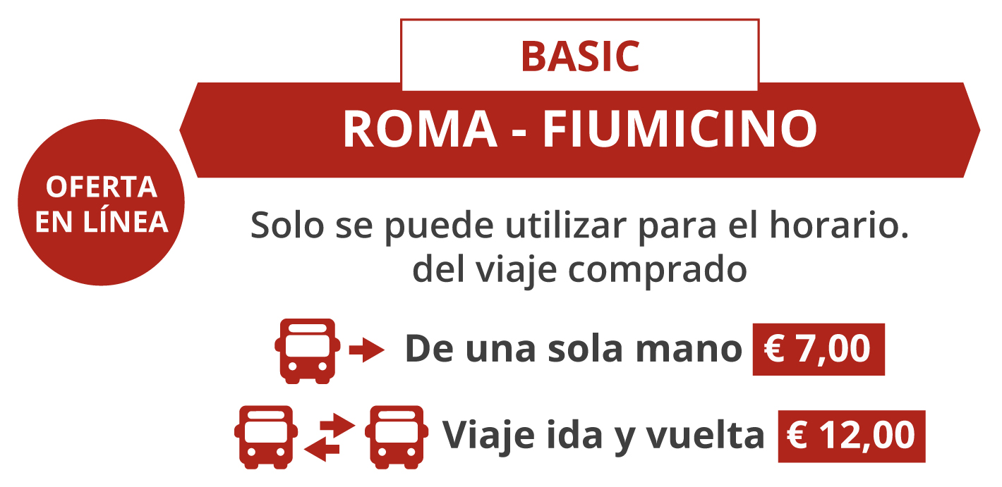 *Informamos a nuestros amables clientes que desde la parada Roma Stazione Ostiense hasta el aeropuerto de Fiumicino solo se puede subir al autobús con un billete comprado online.